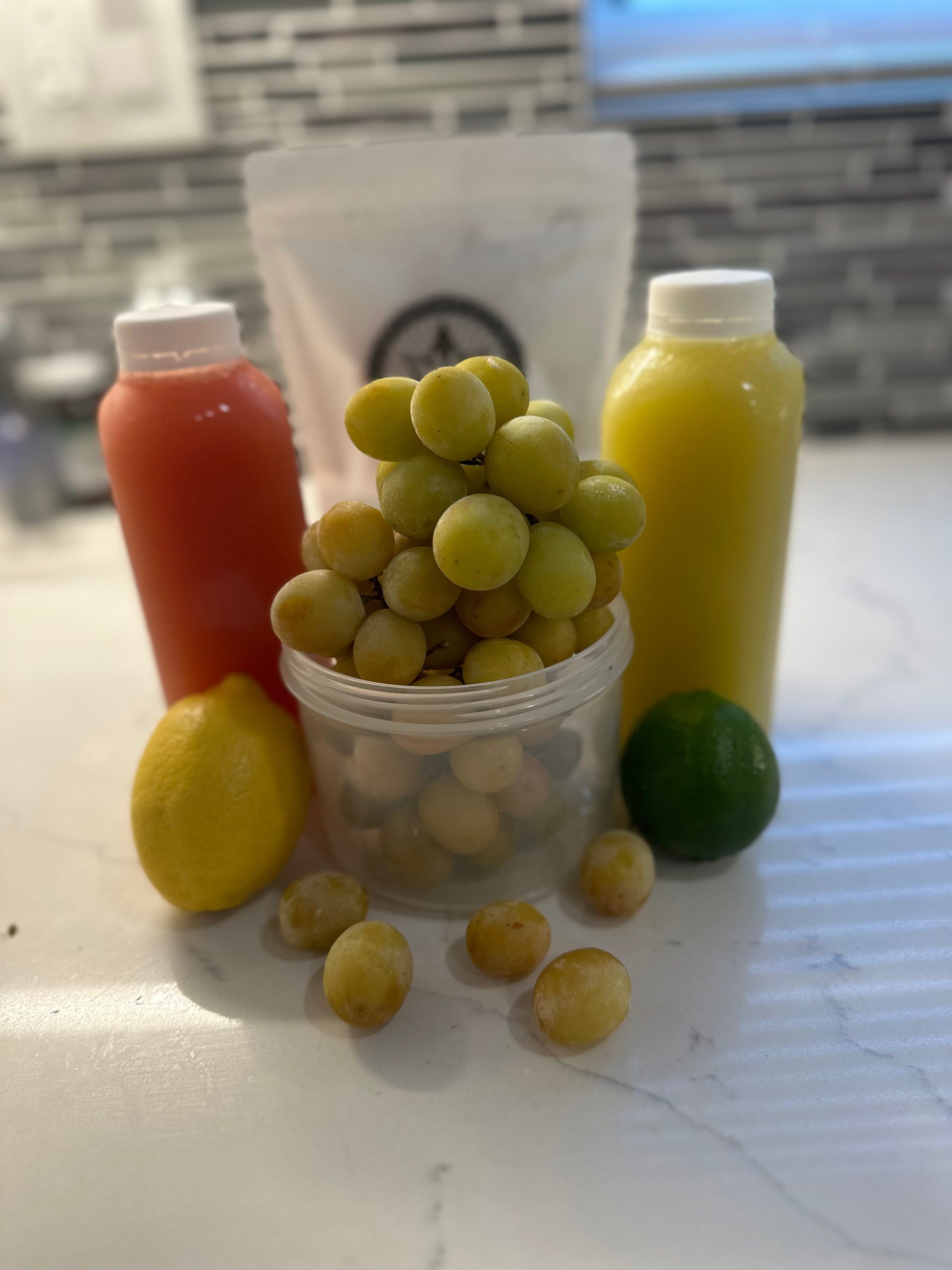 Lose Weight Faster: Elevate your weight loss journey with a nutrient-dense juice featuring kiwi, apple, grapes, lime, ginger, and a scoop of organic sea moss powder, fostering satiety, supporting metabolism, and providing essential nutrients for a balanced approach to shedding pounds.
